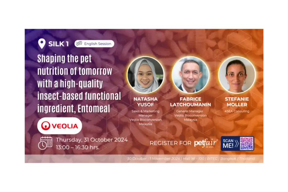 For the first time ever, Veolia will be organising an exclusive Pet Seminar at Pet Fair SEA in Bangkok, BITEC, Room Silk 1 this 31st Oct from 1pm to 4.30pm! With the seminar theme, “Shaping the Pet Nutrition of Tomorrow with High-Quality Insect-based Functional Ingredients’’, prepare yourself to discover:
